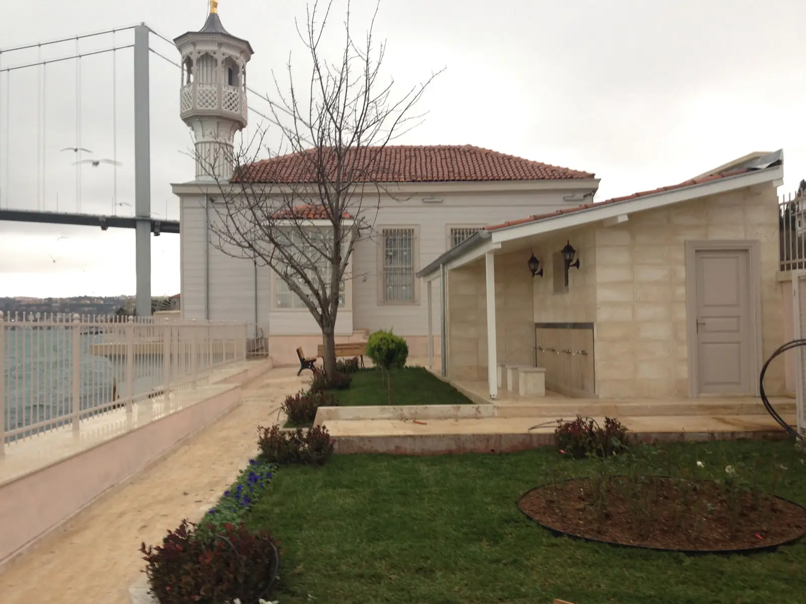 Üryanizade Ahmed Esad Efendi Mosque on Abdullahağa Street on the coast of Kuzguncuk, Üsküdar was built in 1860. The rectangular wooden mosque has a wooden pulpit and a sermon pulpit. Similarly, it is a unique structure in Istanbul with its wooden kiosk-type minaret decorated with diamond motifs and its location right on the sea. As a result of the tender made by the 2nd Regional Directorate of Foundations between 2013 and 2017, a comprehensive repair was carried out under the responsibility of our company. Within the scope of this repair, the wooden load-bearing wall and flooring elements that were completely rotten due to humidity were replaced with oak timber by suspending the mosque ceiling. According to the board-approved project, the Borum floor, which was a boat house, was given a breakwater on the sea side and given a storage function. Women’s and men’s toilets and a fountain were built in its garden, and the works were completed by building garden landscaping and surrounding walls.